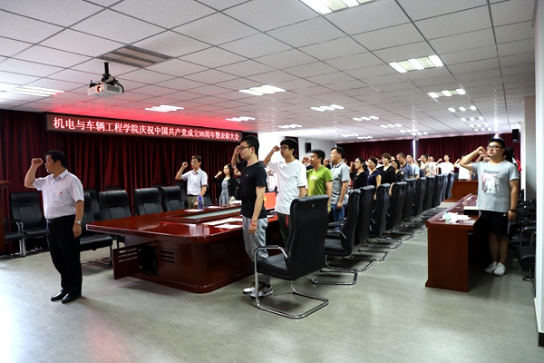 会议在庄严的国歌声中拉开序幕。会上,全体党员面向党旗,院长杨建伟同志领誓,进行了新党员宣誓和老党员重温入党誓词。