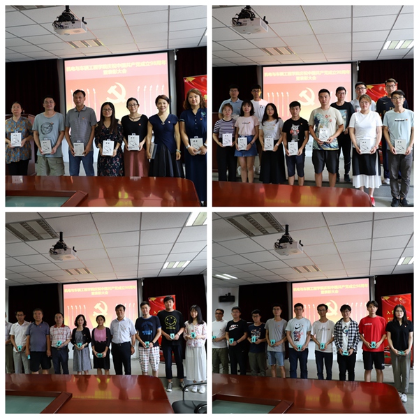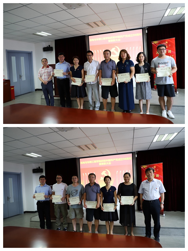 副院长刘永峰宣读了受表彰党员名单,学院党委副书记陈娟和副院长王传涛为获得一等奖的党员进行了颁奖,党委委员朱爱华和曾祥渭为获得二等奖的党员进行了颁奖。