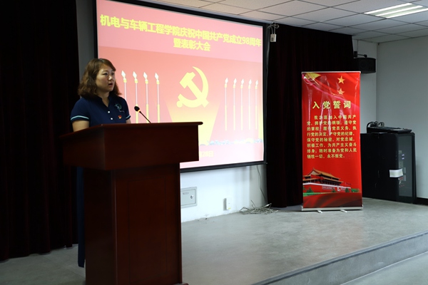 为庆祝中国共产党成立98周年,回顾党的光辉历程,讴歌党的丰功伟绩,表彰在“学习强国”平台学习竞赛周中获奖的先进个人和基层党组织,6月28日下午,机电学院在学c322会议室隆重举行纪念中国共产党成立98周年暨表彰大会。学院领导班子、党委委员、全体教师党员及学生党员代表出席大会。会议由学院党委副书记陈娟主持。