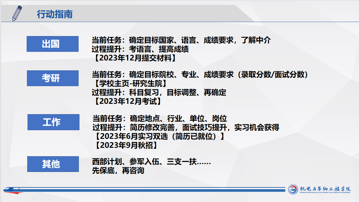 机电学院将把握就业动员黄金期,持续引导2024届毕业生完成从学业关注到就业关注的思路转换,做到统筹资源、协同联动、精准帮扶,为学生提供求职咨询、技能提升的良好平台,推进就业工作高质量开展,打通人才培养输出的“最后一公里”。