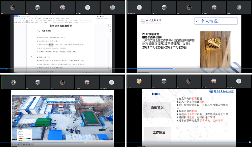 2021届毕业生高飞则分享了工程类单位的工作模式、技能要求以及待遇情况,从建筑行业特点、自身实际体验给出建议,为同学们做好就业准备。