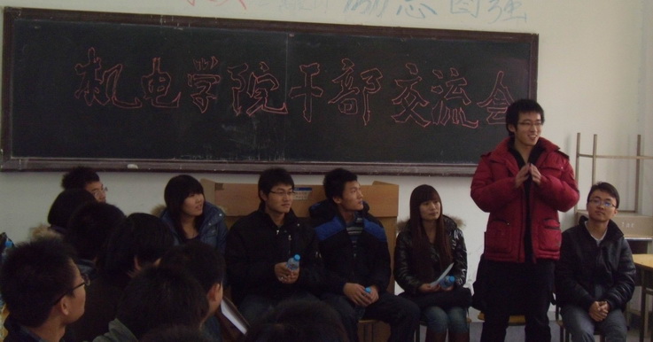 11月25日,机电学院在大兴校区举办了学生干部经验交流会。参加此次交流会的有机电学院学生会主要干部及09级各班班委、大兴校区第四团总支成员。机电学院团总支书记陈娟参加了此次交流活动。