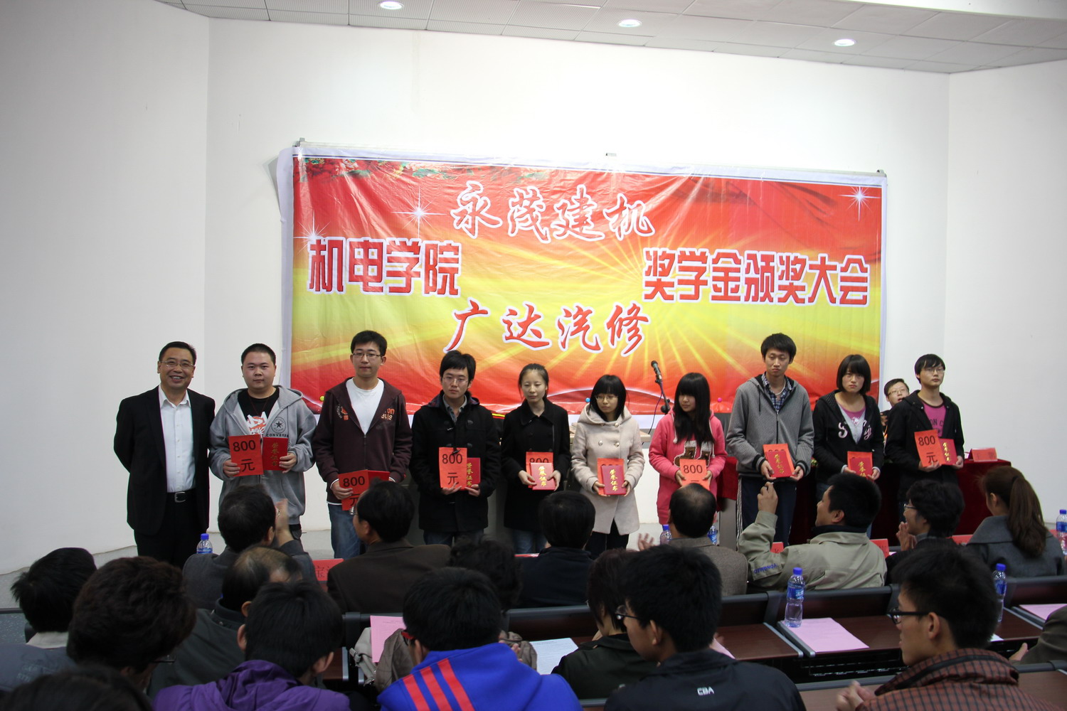 据悉,机电学院2010年在获得北京永茂建筑机械公司、北京广达汽车维修设备有限公司各提供5万元奖学金后,院务会认真讨论了奖学金发放办法,制定通过了《北京建筑工程学院机电学院永茂建机奖学金管理暂行办法》、《北京建筑工程学院机电学院永茂建机奖学金管理暂行办法》。《暂行办法》结合机电学院学生学习的特点,突出了对学生成长、成才、成人的引导,同时又尽量不和学校提供的奖学金重合。《暂行办法》除针对广大学生设立了综合一、二等奖学金外,还设立了单项奖学金,如鼓励学生认真学习英语的英语学习优秀奖学金(包括英语学习个人、宿舍、班级优秀奖,以国家四六级英语通过为标准),就业奖学金(鼓励学生到设立奖学金的单位就业)等。《暂行办法》制定完成后,在机电学院本部二楼的橱窗张贴并向学生、班导师广为宣传。两个企业奖学金的设立及颁奖大会的召开,将会极大的鼓励、引导广大机电学子认真学习英语及专业知识,不断提高自身综合素质。