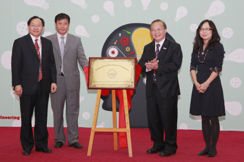 IMechE北京地区负责人周惠兴教授介绍了北京地区学生分会机械创新活动情况,并鼓励青年学子们热爱机械,满怀激情学好专业知识,加入到机械创新的大军中来。机电学院院长杨建伟向与会嘉宾介绍了学校和学院学生创新的情况,并表示将大力支持学生分会活动,充分利用IMechE丰富的学术资源,为学会的进一步壮大和发展贡献力量,努力建立学会和学院的双赢机制。香港分会青年代表Teddy Chan与同学们分享了他作为IMechE会员的成长历程,并介绍了香港工程师创新能力培养的模式。IMechE东北亚地区主席W.K.Chow向校团委书记朱静老师颁发了学生分会证书,并与周惠兴教授、杨建伟教授一同揭幕,宣布IMechE北京建筑大学学生分会正式成立。
