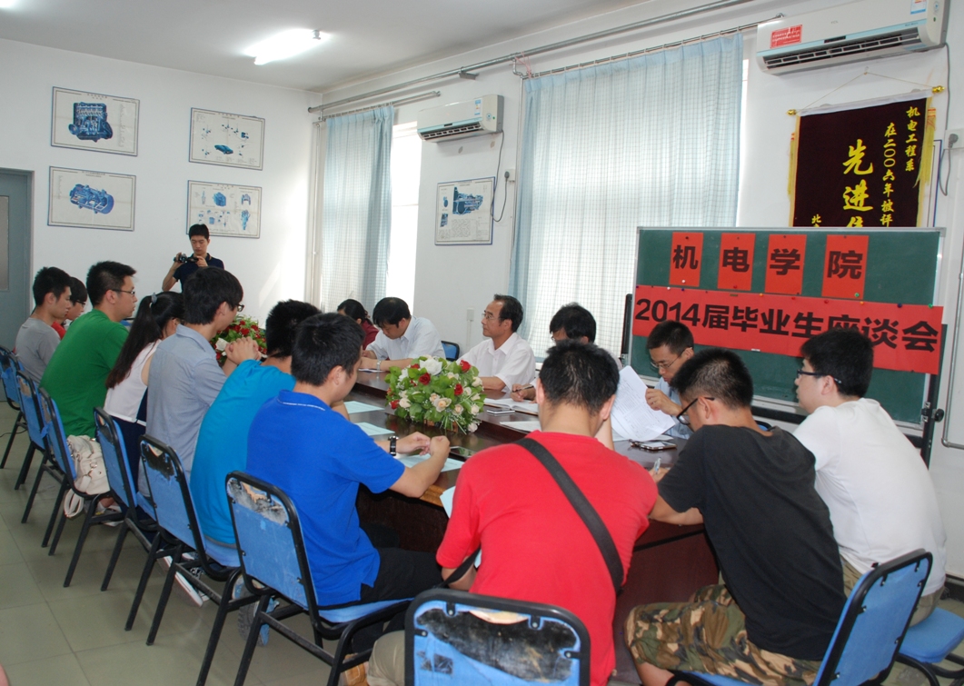 7月4日,在全校热烈庆祝2014届本科毕业生圆满完成学业之际,机电学院召开了2014届毕业生座谈会。学院党总支书记王跃进、院长杨建伟、副院长朱爱华、党总支副书记汪长征、辅导员曾祥渭以及来自毕业班的研究生、本科生代表参加了座谈会,座谈会由党总支书记汪长征主持。