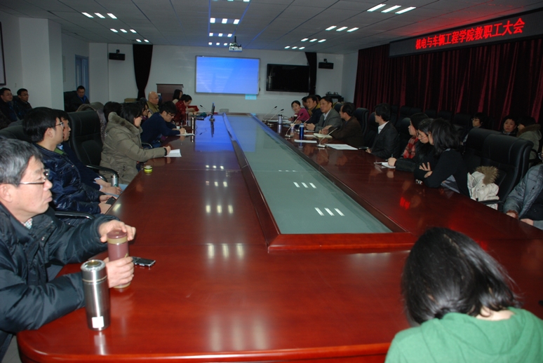 1月20日,机电学院召开教职工大会,学院全体教职工齐聚大兴校区学院楼C座,一起总结2014年取得的成绩,展望2015年的工作。纪委书记何志洪、学院领导及全院教职工参加会议,会议由学院分工会主席汪长征主持。