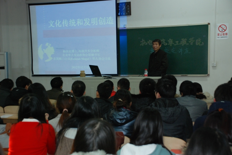 2012年12月,杨庆民博士为我校师生做题为《文化传统和发明创造》的学术报告