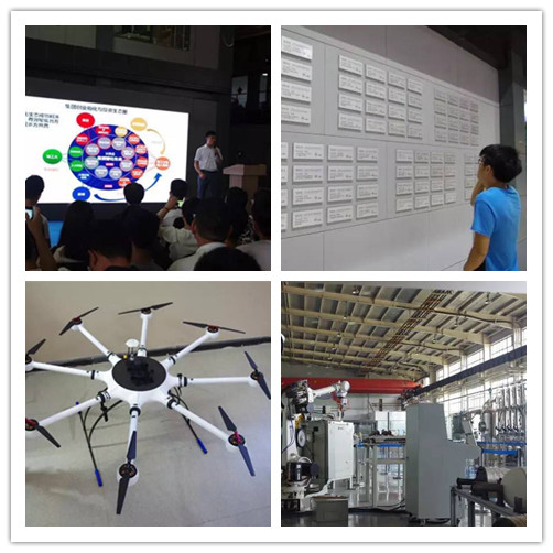 项目路演结束后,大赛组委会组织参观了赞助商——哈工大机器人集团。哈工大机器人集团是由哈尔滨工业大学、黑龙江省政府、哈尔滨市政府于2014年底共同投资建设的一家机器人集团公司,集团公司依靠哈工大机器人方面雄厚的人才实力,在短短两年内已经取得了迅猛的发展。集团公司的副总经理进行了详细介绍,并给众多年轻的创业团队提了很多建议。大赛组委会还邀请到了中国科工集团的高层领导来做报告。中国科工集团是一家世界五百强企业,年收入达300亿美元,科工集团在航空航天、机械领域的实力都非常雄厚。科工集团领导向各创业团队发出了邀请,欢迎有实力的团队与科工合作,并承诺会给年轻的团队提供最大限度地帮助。最后参观了集团公司的展览区,工作人员展示了各种工业机器人、无人机、服务机器人等。通过参观,同学们眼界大开,对所学专业有了更深层的理解,对科技创新有了更高的追求。