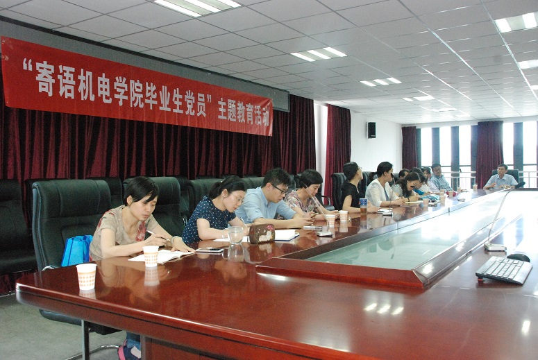 按照学校关于“两学一做”学习教育的要求,为了加强对2016届毕业生党员的学习教育,6月15日,机电学院三个本科生党支部与图书馆直属党支部联合开展以“学党章党规 学系列讲话 做优秀毕业生党员--寄语机电学院毕业生党员”为主题的毕业生党员教育活动。活动由机电学院党委副书记高瑞静主持,图书馆直属党支部书记沈茜、机电学院学生党支部书记刘星、曾祥渭等参加活动。