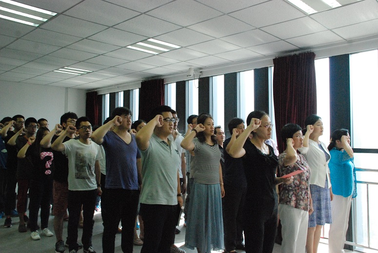 交流结束后,学生党员们跟随老党员们一起重温了入党誓词。持续一个半小时的座谈会给师生们留下了深刻的印象,成为毕业生党员一堂难忘的党课。