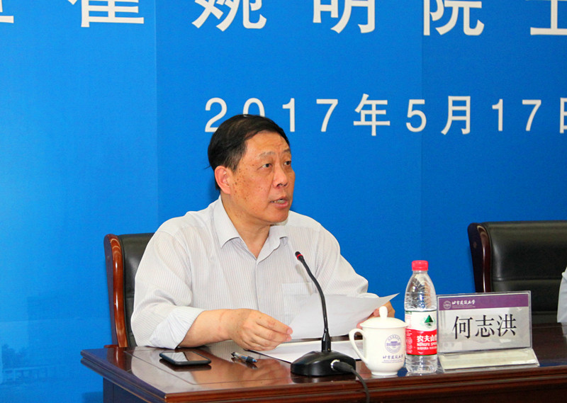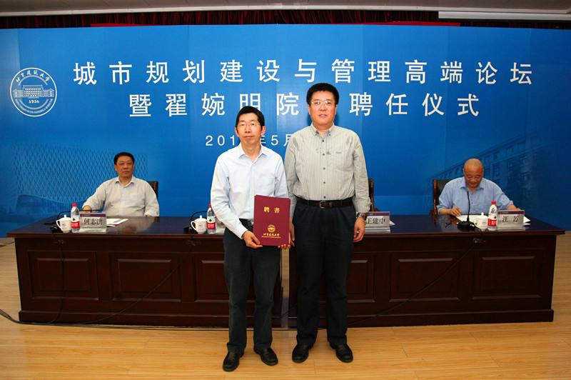 纪委书记何志洪宣读了《关于聘请翟婉明院士为北京建筑大学发展咨询委员会委员和北京“未来城市设计高精尖创新中心”学术委员会委员的决定》。党委书记王建中代表学校向翟婉明院士颁发了聘书。