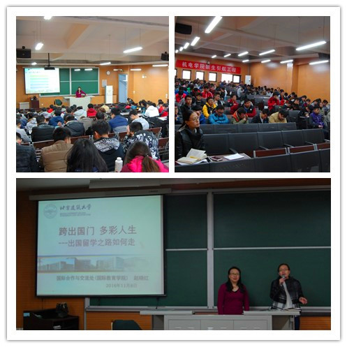 11月8日下午,机电学院邀请国际交流与合作处处长兼国际教育学院院长赵晓红为机电学院2016级新生做了“跨出国门 多彩人生--出国留学之路如何走”的专题讲座。讲座由机电学院党委副书记高瑞静主持。