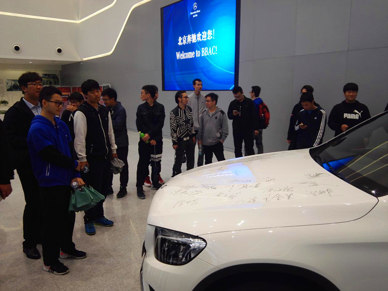 在整个过程中,同学们先后观看了企业发展宣传片、厂区沙盘,参观了北京奔驰E/GLC车型总装车间,深入理解了汽车生产的冲压、焊装、涂装和总装等四大工艺,并切身体会了冲压厂房具有高效率、高精度、低能耗等独特之处,既可以有用的利用资源,也保护好了环境;焊装厂房生产线,配备多个自动化系统,使车身焊接更加精密;机器人自动喷涂系统实现了柔性化和环保化,确保高效率和高品质;总装厂房采用德国最进步的精细化作业,使生产线员工专注于装配工作,有力地保证了装配品质。通过此次实践活动,同学们结合专业知识进一步学习了现代化汽车工业的先进管理模式和专业技术,不仅开拓了视界,更是认清了当前汽车产业模式与汽车行业的人才培养需求,感受到国际一流的企业科学严谨的生产流程。