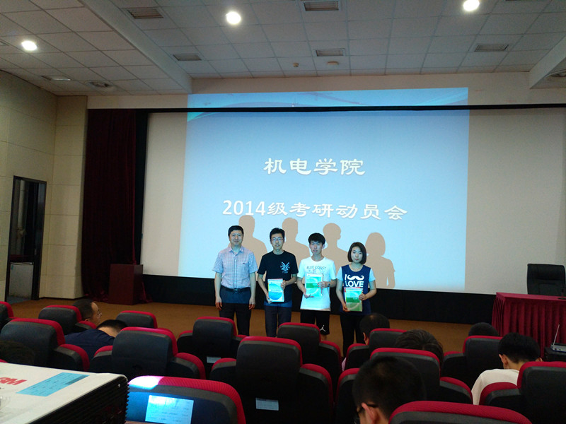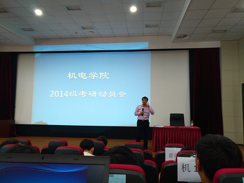 为进一步加强学风建设,充分调动2014级学生考研的积极性,让同学们进一步了解考研、认识考研、明确目标、确定方向,5月23日下午,机电学院在学D报告厅召开了2014级学生考研动员大会。机电学院院长杨建伟,副院长刘永峰、张军,党委副书记高瑞静出席动员会。大会由机电学院团委书记刘星主持。