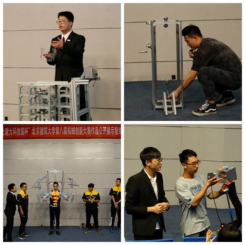 “北建大科技园杯”北京建筑大学第八届机械创新设计大赛,自2017年9月开始,全校各相关专业的老师、同学积极加入到机械创新的队伍中,历经8个月,最终有18组作品进入决赛。作为学校重要科技竞赛之一,机械创新设计大赛迄今已举办八届,大赛旨在引导学校在教学中注重培养大学生的创新设计意识、综合设计能力与团队协作精神;加强学生动手能力的培养和工程实践的训练,提高学生针对实际需求通过创新思维,进行机械设计和工艺制作等实际工作能力;吸引、鼓励广大学生踊跃参加课外科技活动,为优秀人才脱颖而出创造条件。