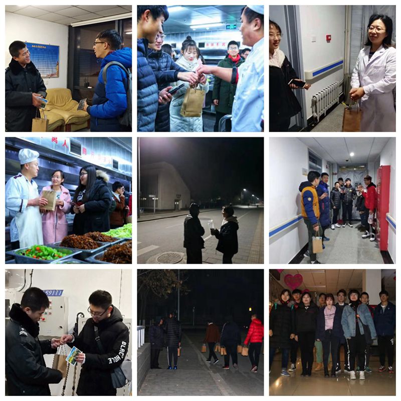 活动在祝福声和欢笑声中结束,同学们亲身体会到北建大教职工工作的辛苦,发自内心的收获了感动,学会了感恩。通过这次活动,让学校的教职工也感受到了同学们的热情,让这个寒冷的冬天变得温暖。