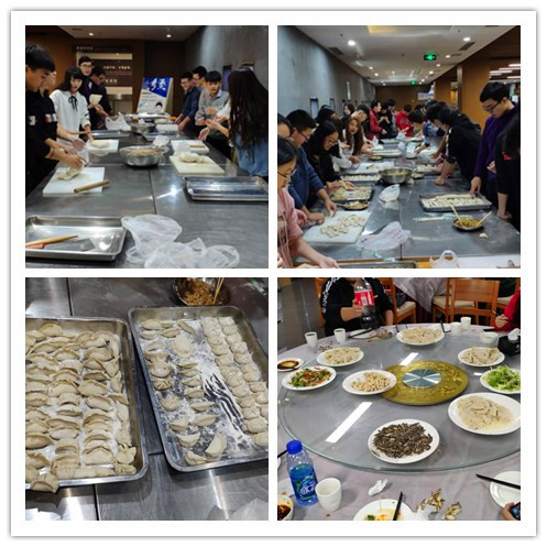 在一片欢乐祥和的气氛中,同学们分工协作,揪面团、擀皮儿、包饺子,大家个个动作娴熟,有说有笑,相互切磋着擀饺子皮的技巧,彼此比较着饺子的形状。不一会儿,桌上的盘子里就摆满了形态各异的“饺子”们,有圆的、有长的,千奇百怪。不会包饺子的同学通过现场学习渐渐也能熟练包出漂亮的饺子,大家有说有笑,分享包饺子经验的同时也能交流学习经验,场面十分热闹。当热气腾腾的饺子端上桌,也许它的外形不算漂亮,味道不算顶尖,但它是同学们亲手制作完成的,大家内心洋溢着浓浓的满足。