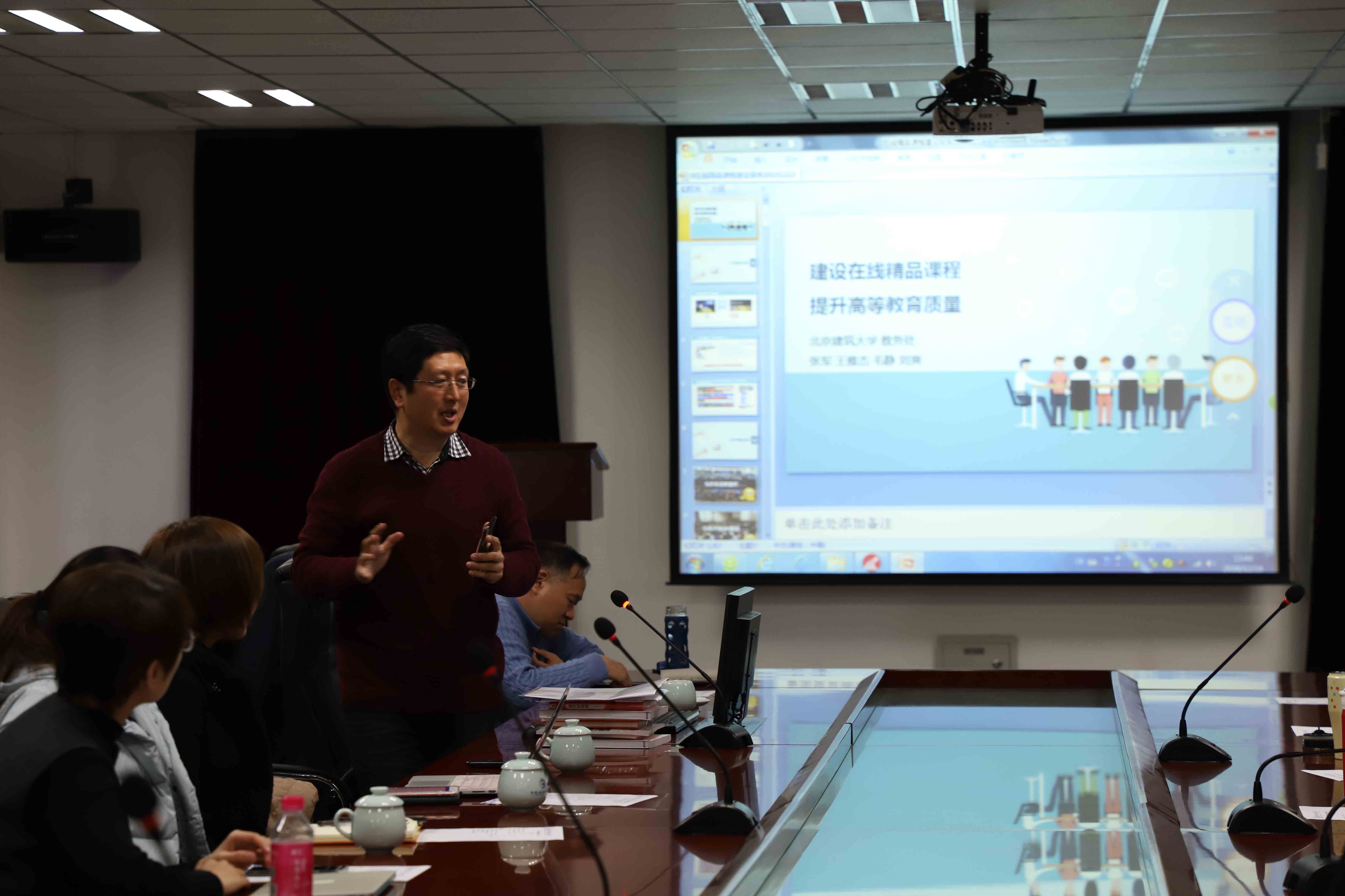 张军首先围绕精品在线课程建设进行了专题辅导,他从在线课程建设的意义、在线课程现状、在线课程标准与技术四个方面,详细阐述了精品在线课程建设的发展方向和建设过程中注意的事项。他讲到,精品在线课程建设要注重传统模式和现代技术操作有机结合,适应新时代高等教育的深刻变革,持续提高课程和课堂质量,促进学生培养质量的提升。