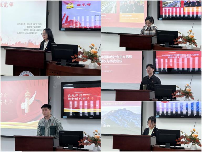 研究生第二党支部殷晨阳以“习近平新时代中国特色社会主义思想的核心要义与历史定位”为题,从历史任务、时代课题、核心要义、历史定位四个方面激励当代大学生牢固树立爱国主义情怀和社会责任感,积极参与国家建设和发展。