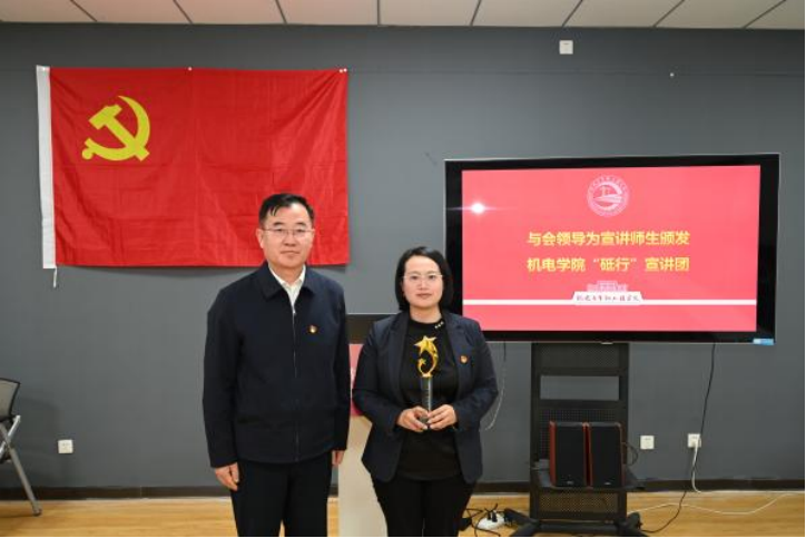 学校党委副书记王爱军、机电学院党委书记李大伟分别为为宣讲师生颁发宣讲团聘书。