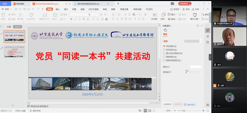 6月23日下午,机电学院全体本科毕业生党员与图书馆直属党支部全体在职党员共聚云端,开展了主题为“共读一本书,寄语毕业生党员”的共建活动,以独特的形式分享了《习近平在厦门》和《习近平在宁德》两本书的读书心得。图书馆馆长邹积亭、机电学院党委书记赵海云、党委副书记陈娟、团委书记刘星、辅导员曾祥渭参加了分享活动。活动由图书馆直属党支部书记兼副馆长毛发虎主持。