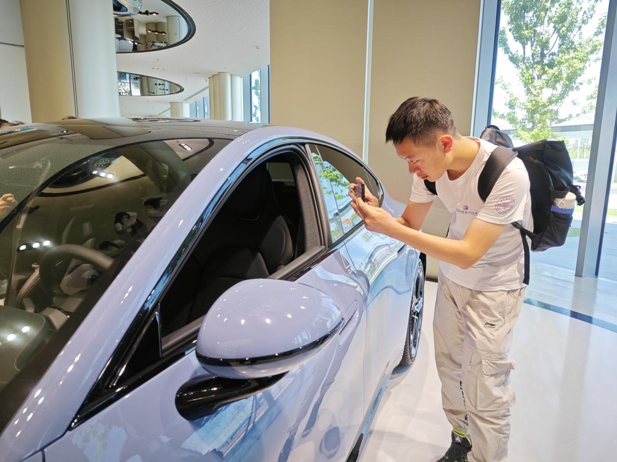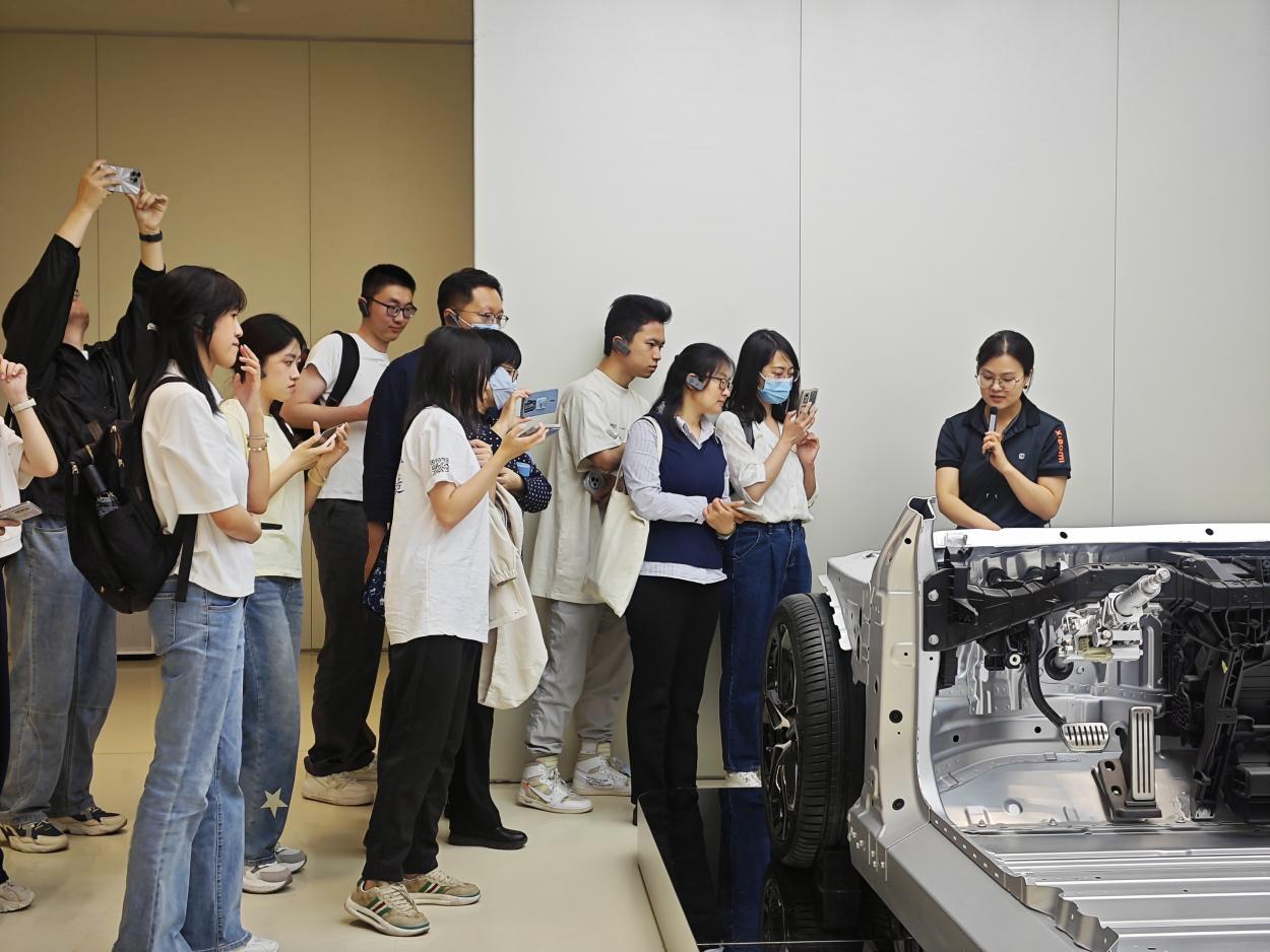 参观后,师生代表还进行了SU7汽车的试驾体验,系主任李欣老师说:“体验了一把火箭起飞时宇航员的感觉!”学生张雁说:“亲身体验了一把什么叫“弹射起步”,车速从0提到100的那3.6秒内,强烈的推背感让我甚至分不清我坐的究竟是汽车还是火箭,持续的尖叫声是肾上腺素飙升最好的证明。”