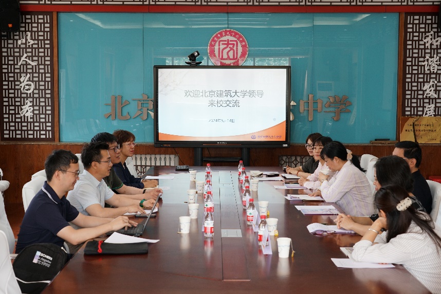 授牌仪式开始前,北京建筑大学李大伟一行参观了九十六中校园,深入了解学校办学和学生培养方面的情况,就合作事宜进行了细致的沟通交流。