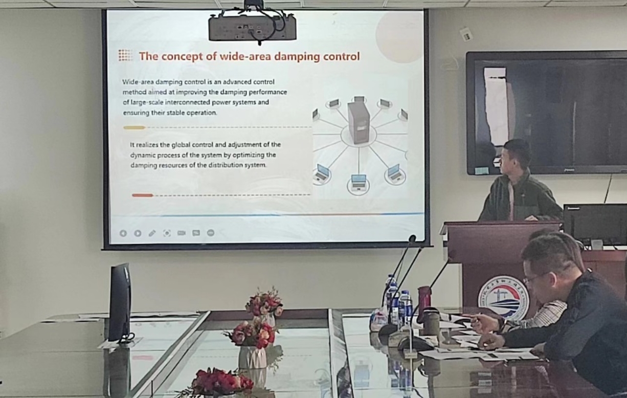 一号选手施凯杰,演讲题目是“Brief introduction of wide-area damping control”,施凯杰同学的选题通俗,做的PPT精美用心。