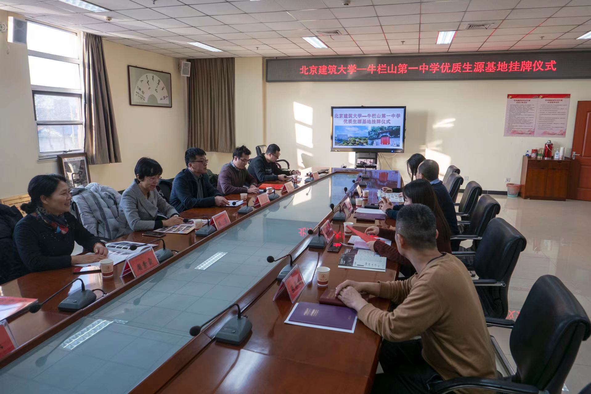 12月29日,教务处联合第七招生工作组(美高梅mgm1888网站)赴牛栏山一中举行优质生源基地挂牌仪式。美高梅mgm1888网站党委书记李大伟、副书记兼副院长高蕾,教务处副处长兼招生办公室主任黄鹤,美高梅mgm1888网站车辆工程系系主任周素霞、智能制造系系主任李欣,教务处招生录取科科长刘杰;牛栏山一中副校长董一明、科研处主任李冬梅、办公室主任全景月、教务处组长张春立参加仪式并座谈。