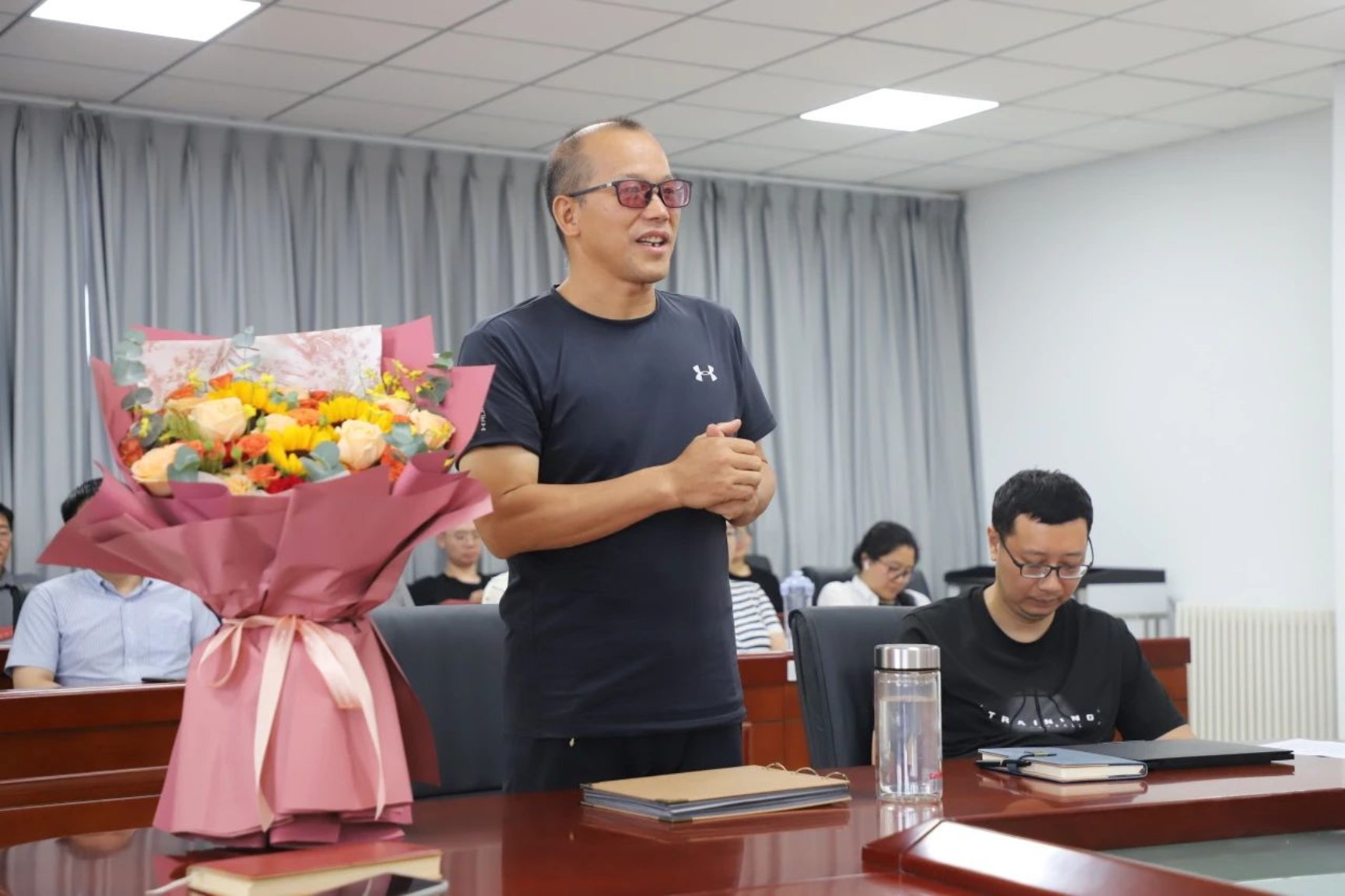 唐伯雁发表感人致辞,他动情回顾了在学院工作的岁月,感谢同仁们的支持与帮助,并寄语年轻教师不断传承精神、开拓创新。