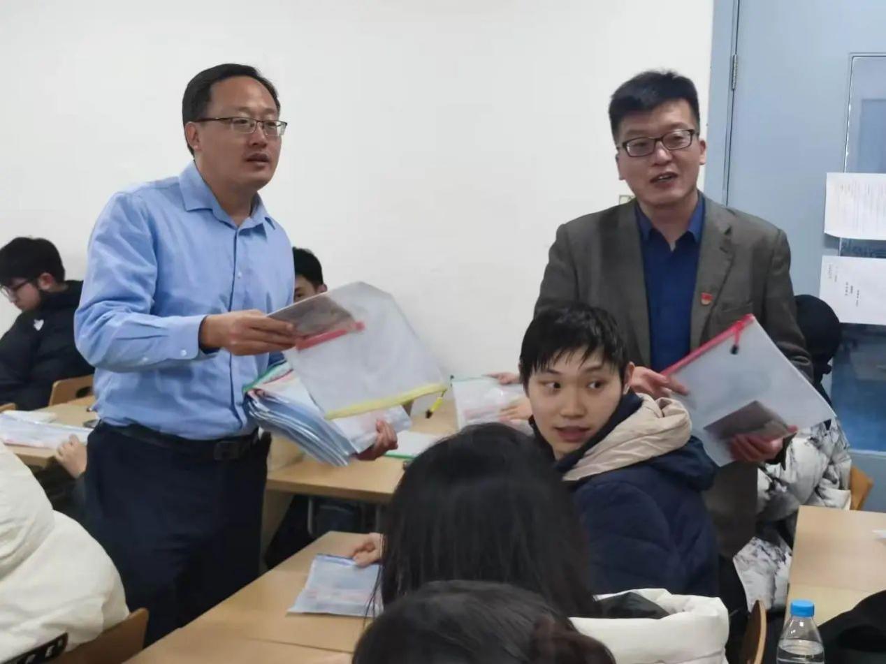 学院班子成员深入考研教室,为同学们加油打气,表达美好祝愿,并为考研学生发放了考研工具小礼包。李大伟勉励同学们要劳逸结合、沉着应战、坚持到底,以理性平和、自信自强的良好心态战胜困难、迎接考试。
