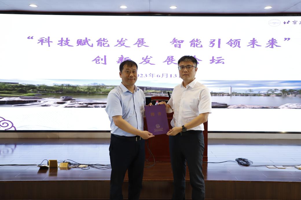 杨建伟为屈凯峰教授颁发校外特聘教授聘书。