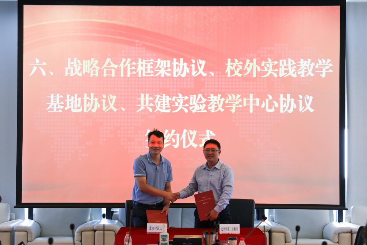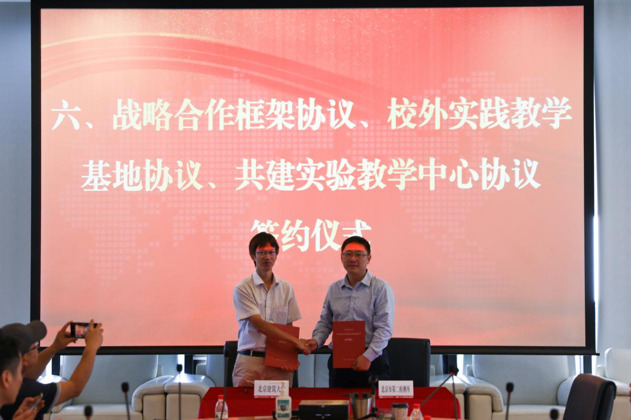 9月1日,我校党委副书记李维平带队赴北京市建设工程质量第二检测所有限公司(北京市建筑设计院下属二级公司,以下简称第二检测所)走访调研,双方签署战略合作协议,成立产学研合作基地、实践教学基地、结构健康监测联合研究中心及土木工程实验教学中心。北京市建筑设计研究院有限公司常委委员、副总经理李中国,人力资源部、复杂结构研究院负责人、第二检测所班子成员及部门负责人参加此次活动。会议由第二检测所副总经理陈曦主持。