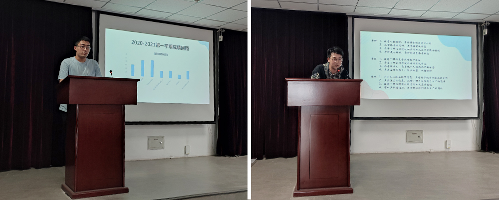 会上,班级学习委员谢泽琦对班级学风建设情况进行总结汇报,并分析了当前学业中的关键点,针对难点课程、四六级备考、考研复习等提出举措。班长孙中原提出班级学风建设规划及目标展望,并鼓励班级学生共同努力、共同提升,以奋斗青春拥抱时代。