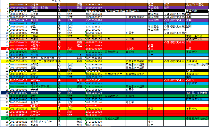 建立课堂出勤日报制度。由各班班长、学委填写课堂出勤日报表,学生会负责每日班级课堂通报,辅导员及时跟进并监督指导,并形成出勤周报。毕业班级以就业升学情况为为考察指标,以周为单位汇总上报,及时掌握毕业生的就业情况,并做出有针对性的就业指导和帮扶。