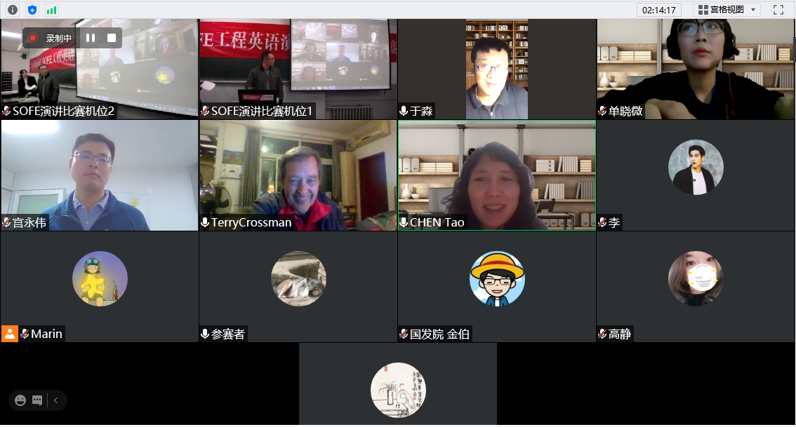 疫情之下的特殊时期,2020年IMechE SOFE北京区英语演讲比赛采取选手线下比赛、评委专家及观众线上观看的比赛形式,借助腾讯会议线上会议软件,良好展示了现场演讲选手的多个角度,并将演讲音频清晰传达给线上专家及观众。本次比赛的评委有:北京建筑大学国际化发展研究院(国际教育学院)副院长陈韬、北京建筑大学“建大杰青”宫永伟、北京建筑大学机电学院副教授于淼、北京建筑大学机电学院教师单晓微、北京建筑大学国际化发展研究院(国际教育学院)拟聘任美国籍外教高天瑞(Terry)。