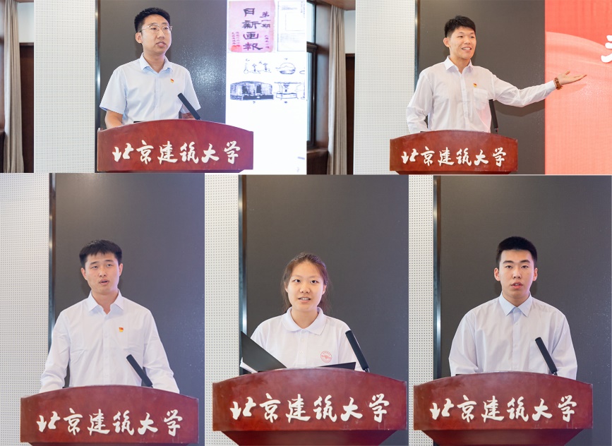 学生党支部推荐的党员代表进行“传承百年院史、赓续红色血脉”主题宣讲展示,共分为五讲。研究生第一党支部傅景泉宣讲《赓续百年院史 造就大国工匠》,研究生第一党支部张志强宣讲《做一个革命的工程师 建设一个强大的中国》,本科生第一党支部闫哲屹宣讲《承“轨”交发展 普薪火相传》,本科生第一党支部张雁宣讲《黄永铸和国庆彩车的30年》,本科生第二党支部赵天宝宣讲《薪传火种、服务首都建设,执着攀登、擦亮党员底色》。五个精彩的宣讲,按照时间顺序梳理了机电学院百年学科专业发展史;回顾了百余年来北建大机电人实业救国、工业兴国、科技强国的奋斗历程;讲述了优秀机电学子在新中国“十大建筑”、亚运工程、奥运工程、北京城市副中心建设、国庆50、60、70周年“彩车”设计,北京地铁、城铁以及高铁的飞速发展、面向“中国制造2025”以及“制造强国战略”等一系列国家和首都重要任务、重大战略需求中所做出的重要贡献。