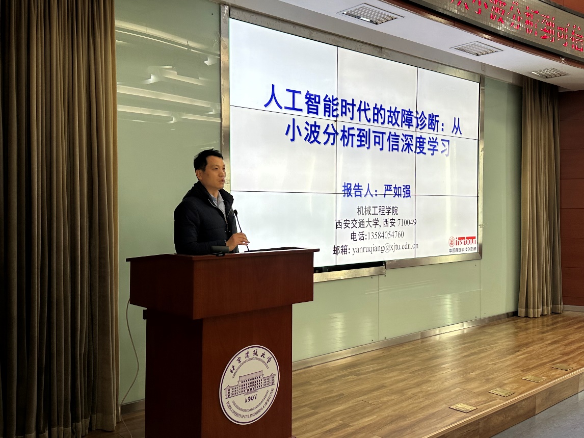 12月8日下午,机电学院在学E报告厅组织开展“挺膺担当 智引未来”第二届研究生创新论坛第四场活动,本期活动邀请西安交通大学教授、高端装备研究院国际机械中心主任严如强教授作“人工智能时代的故障诊断:从小波分析到可信深度学习”主题报告。院长王衍学,副院长王传涛、姚德臣及多名教师参会,会议由王衍学主持。